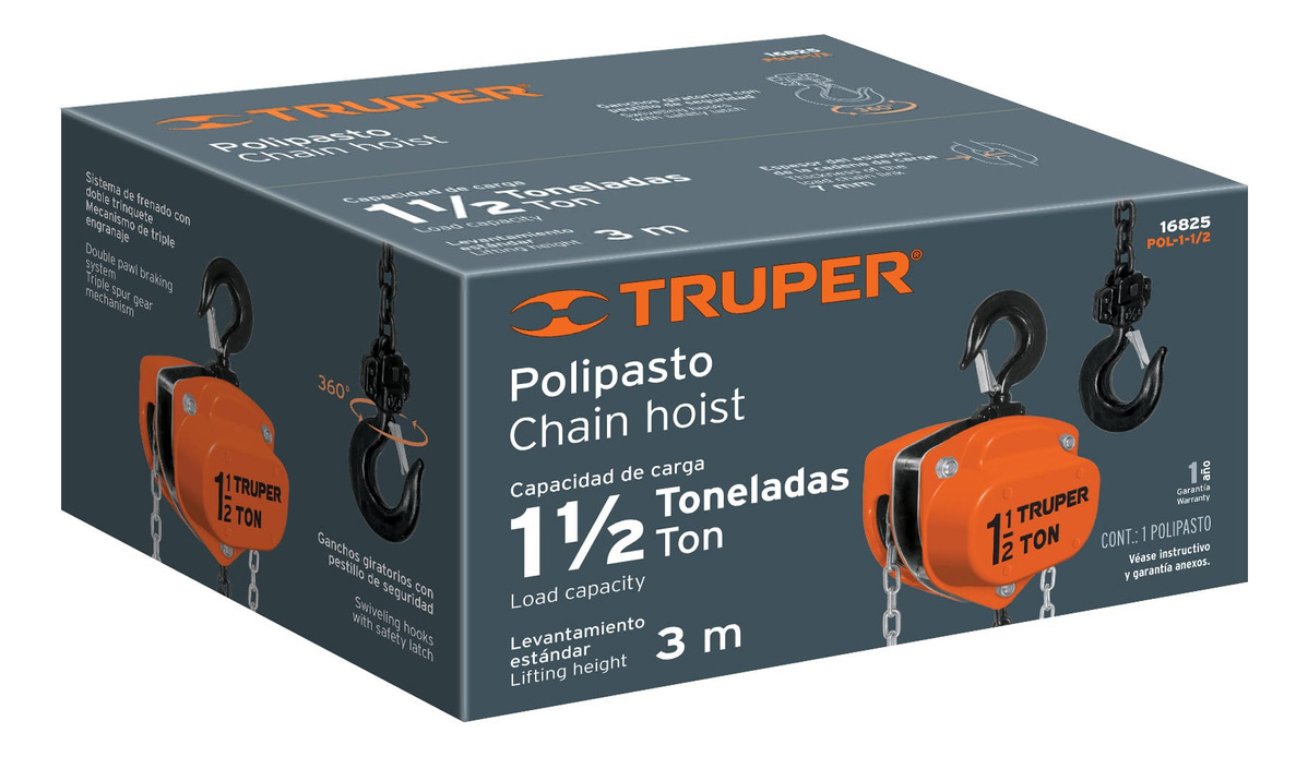 Polipasto 1.5 Ton Cadena 3.29 Mts Truper 16825