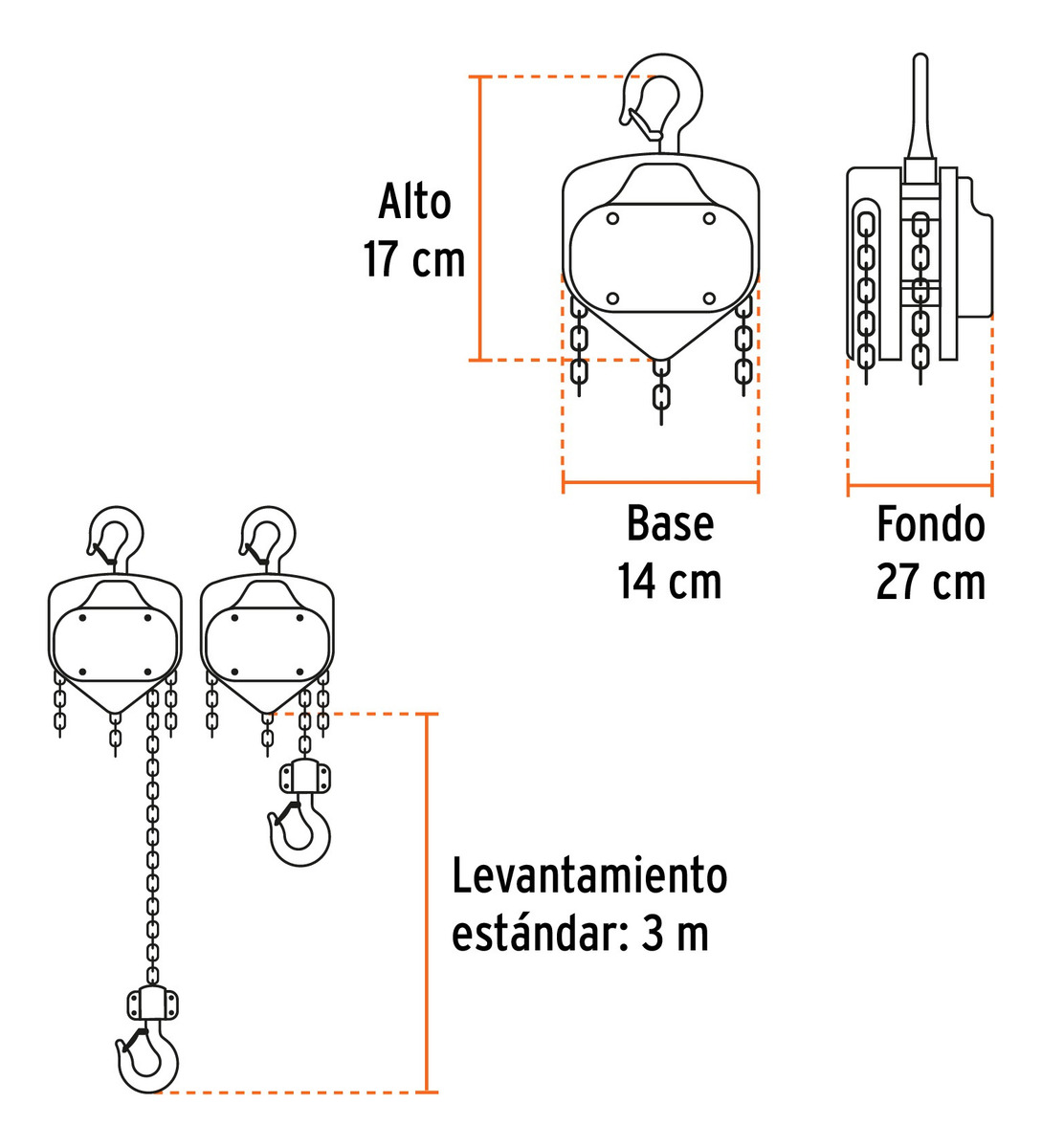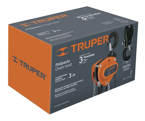 Polipasto 3.0 Ton Cadena 6.69 Mts Truper 16827