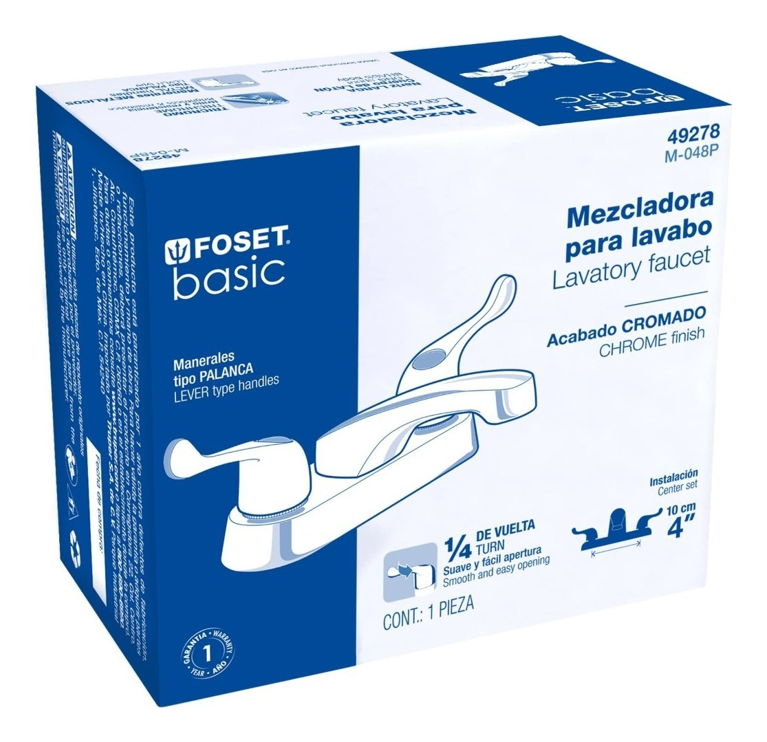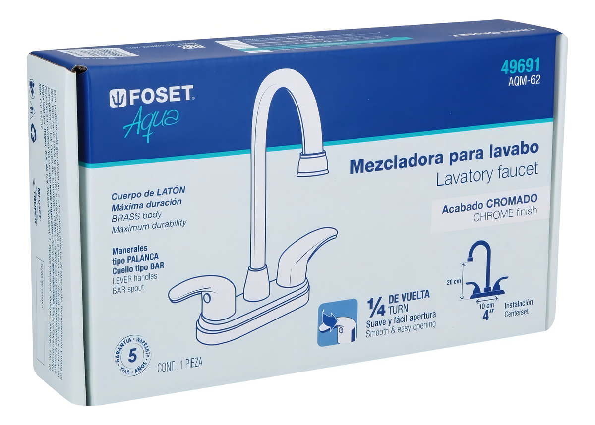 • Mezcl. Lavabo, Manerales Palanca, Cue Alto, Foset, 49693 Acabado Cromado Color Plateado