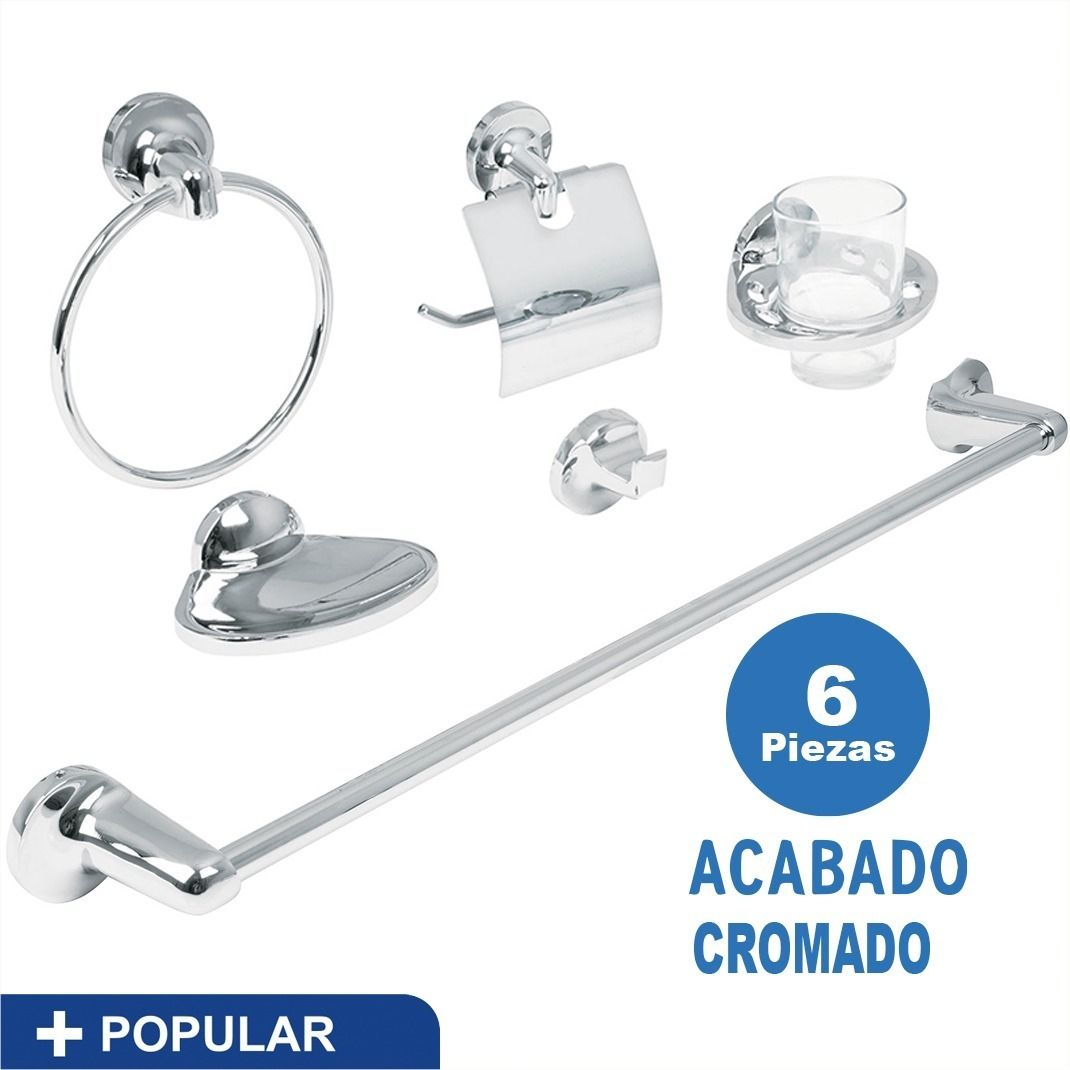 • Juego Accesorios Para Baño, 6 Piezas, Aqua, Foset, 49395