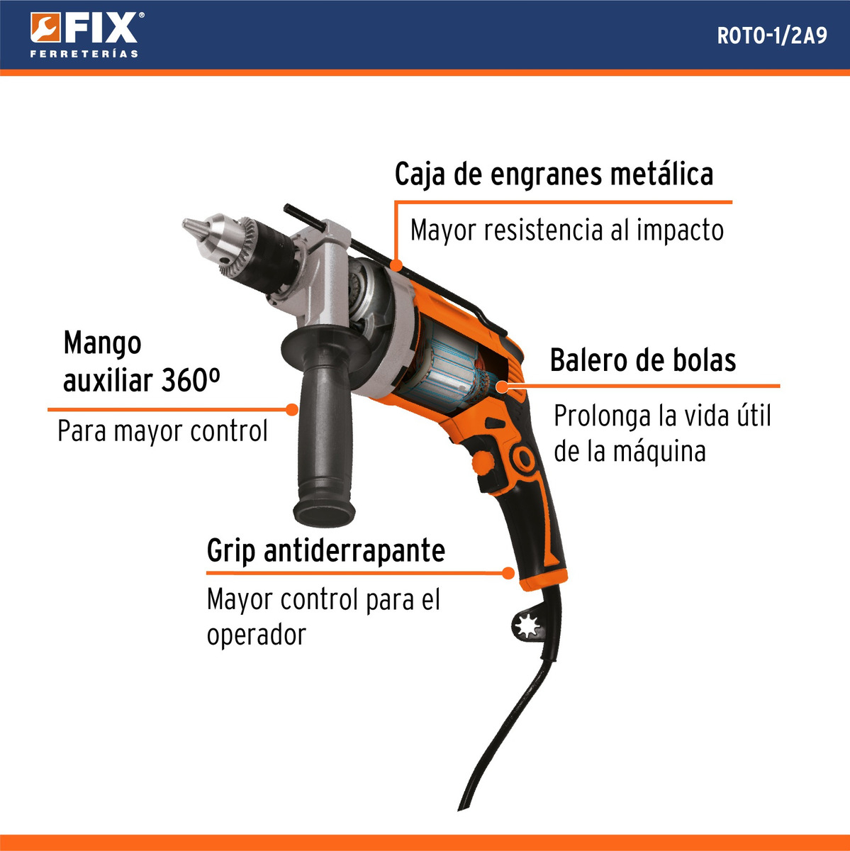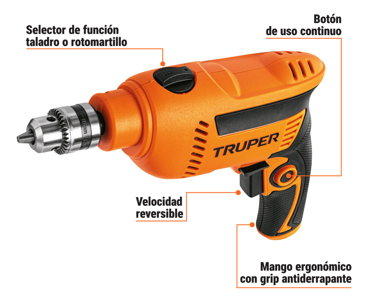 Taladro Rotomartillo Truper ROTO-1/2A10 600W 1/2” Velocidad Variable