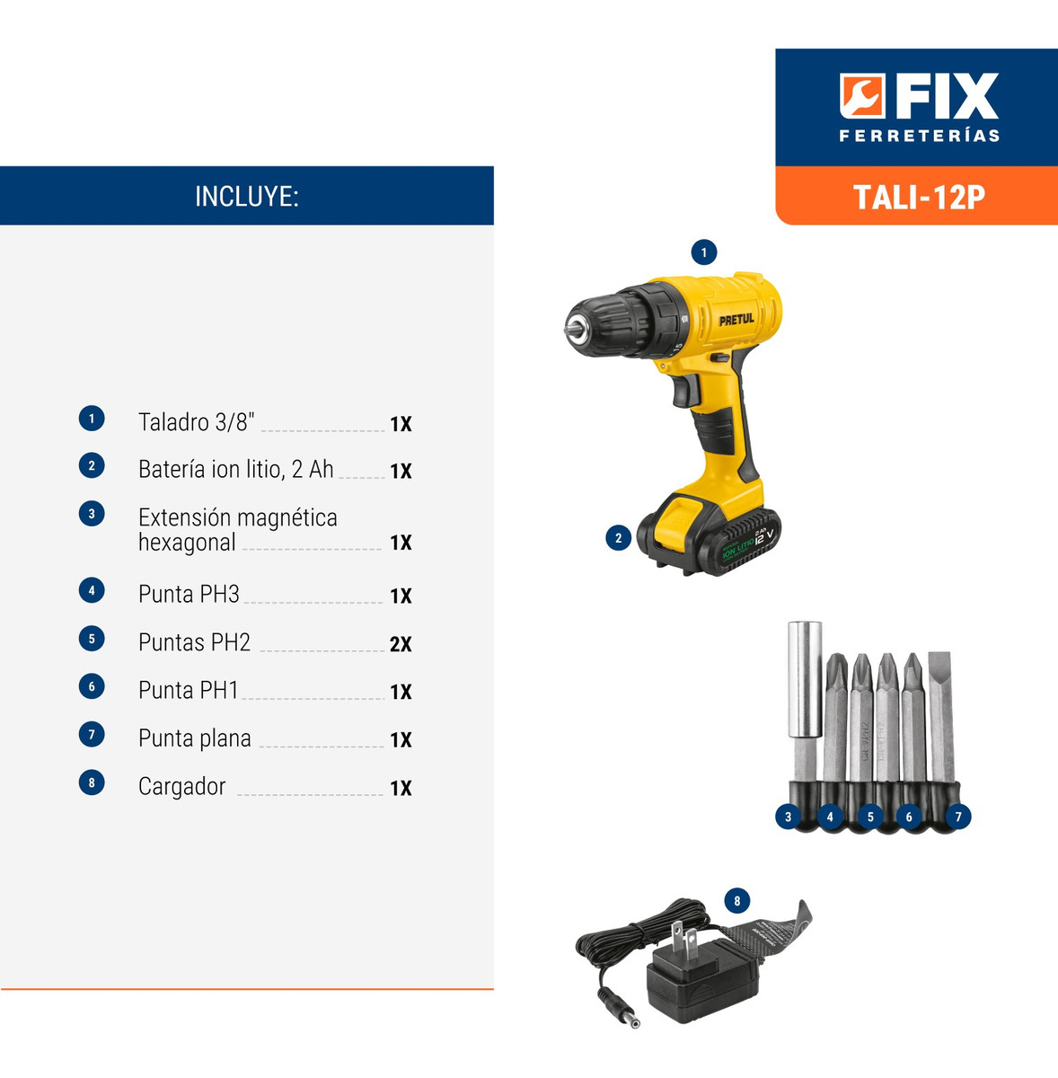 Taladro Inalámbrico 3/8” Pretul Tali-12p Batería Ión Litio 12v Amarillo 60hz