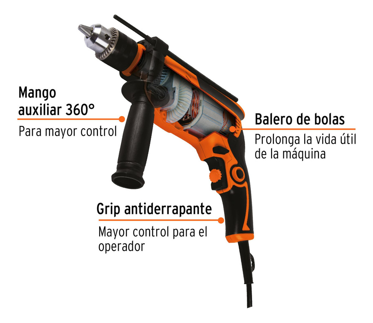 Taladro Rotomartillo Prof. 3/8′ 600 W Truper Roto-3/8a4 Color Naranja Frecuencia 60 Mhz