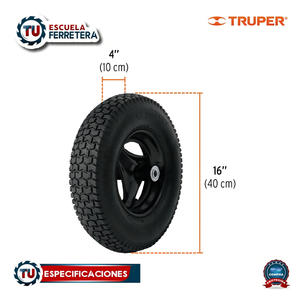 Carretilla 5 Ft3, Llanta Neumática Reforzada, Truper 11753