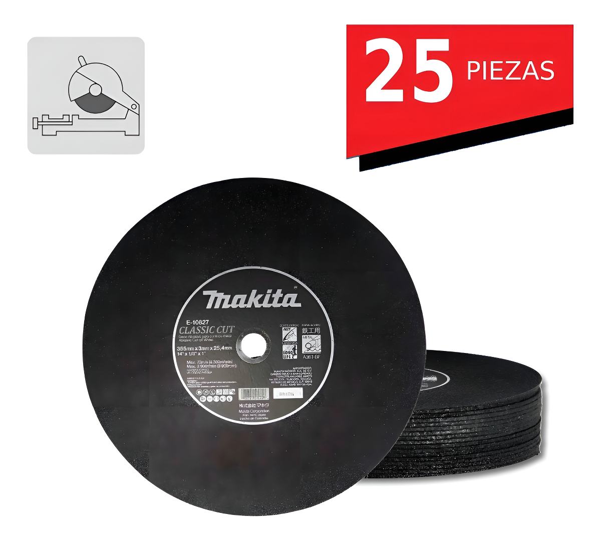 Disco Abrasivo 25pzas Corte Metal 14in Sierra Inglete Makita