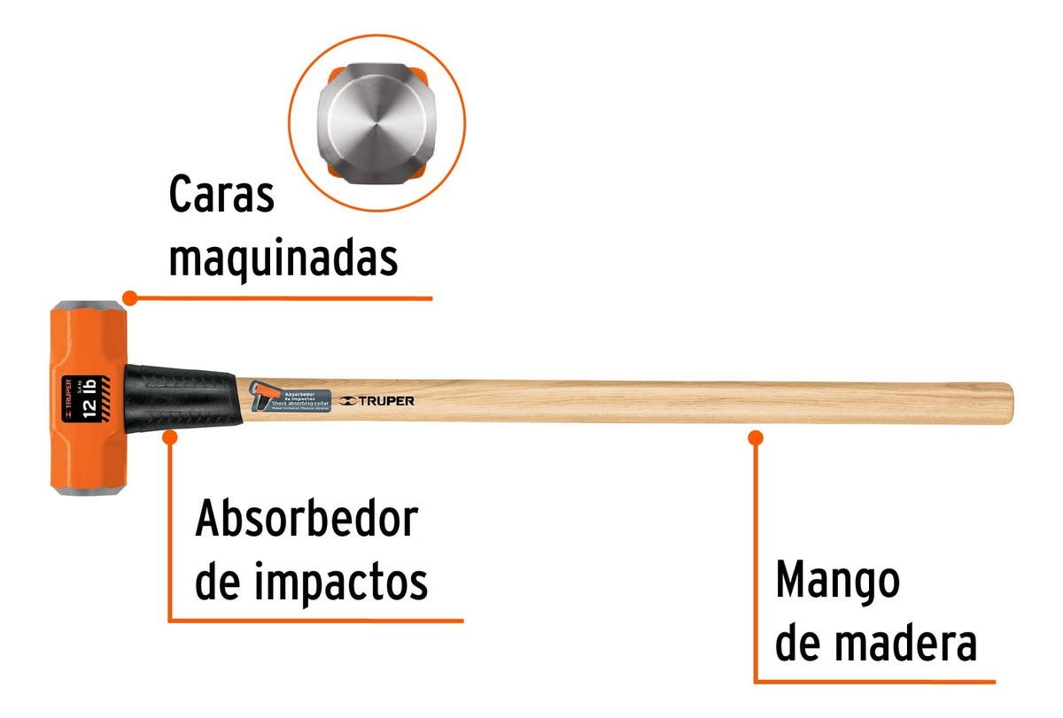 Mazo Marro Octogonal 12 Lb Mango 36” Truper 16513