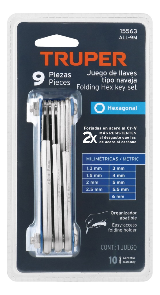 Llaves Allen Tipo Navaja 9 Piezas Truper 15563 Azul 3 Piezas