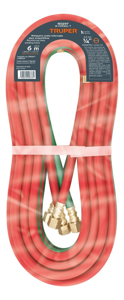 Manguera Cuata Reforzada 6 M Para Oxiacetileno Truper 103297