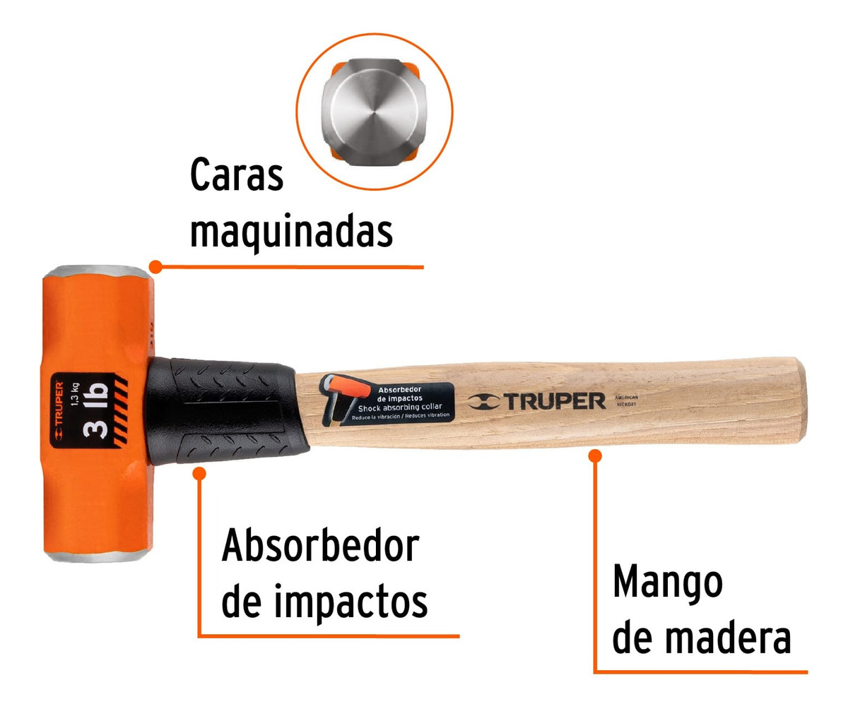 Marro Octagonal 3 Lbs. Mango Madera 12′ Truper 16507 2 Pz