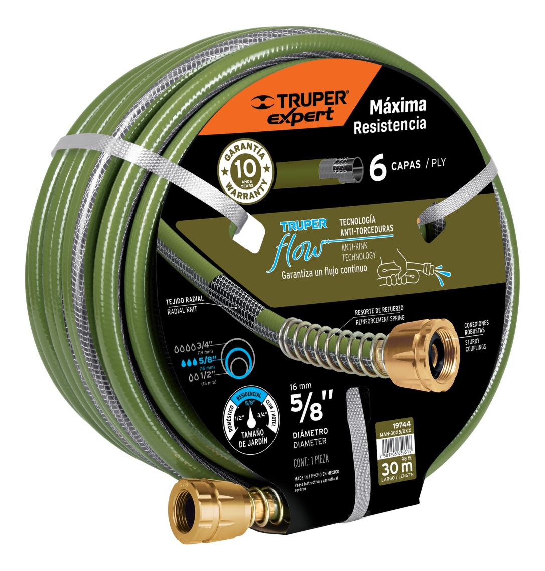 Manguera Para Jardín 5/8 6 Capas 30m Truper 19744 Verde