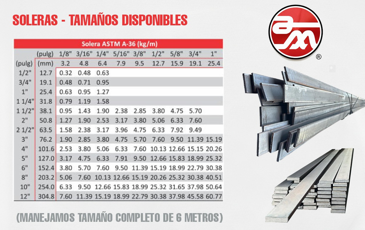 Las 4 soleras de acero A36, con grosor de 1/4” y ancho de 1/2”, son la solución perfecta para proyectos que requieren refuerzos estructurales medianos y pesados. Su fabricación en acero ASTM A36 asegura alta rigidez, excelente capacidad de carga y gran resistencia a la deformación, garantizando durabilidad y confiabilidad en cada pieza.