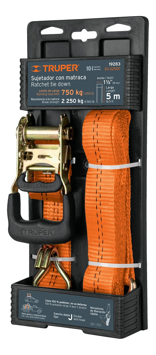 La banda sujetadora con matraca Truper modelo 19283 está diseñada para asegurar cargas durante transporte y maniobras logísticas. Proporciona tensión firme y controlada en pocos segundos.