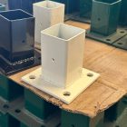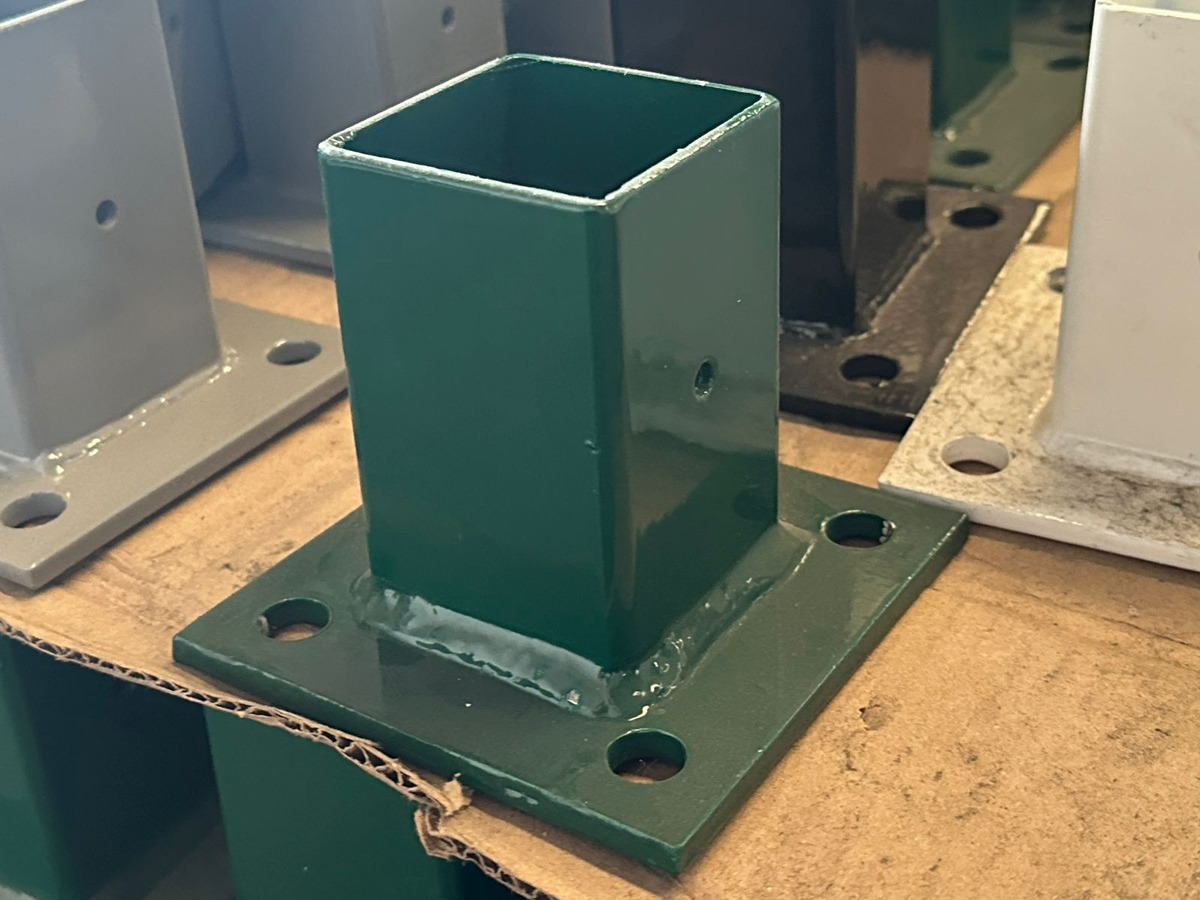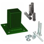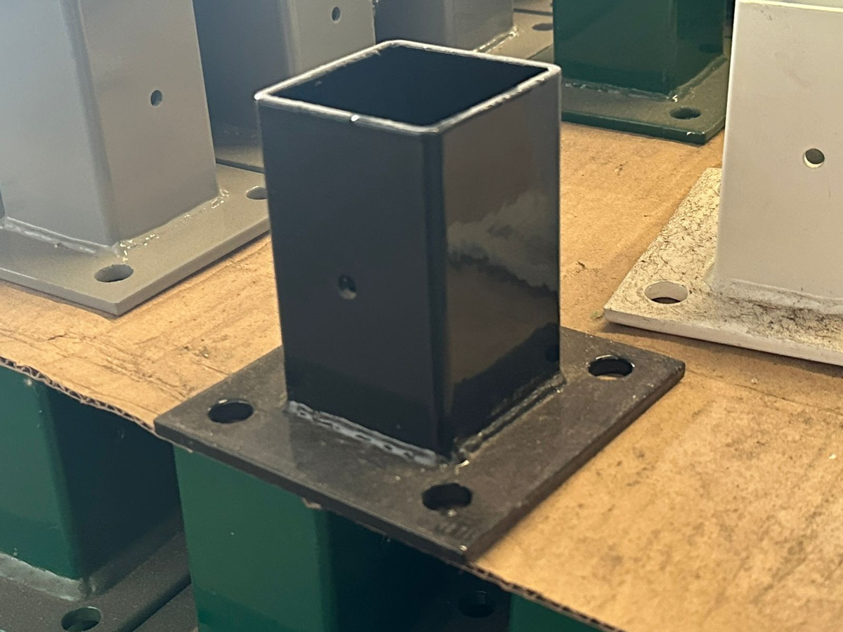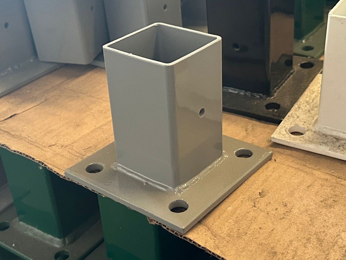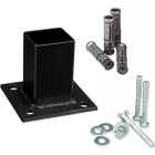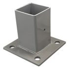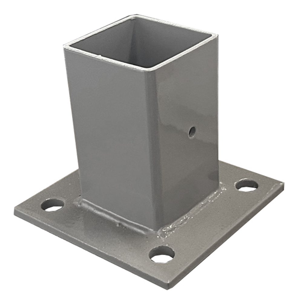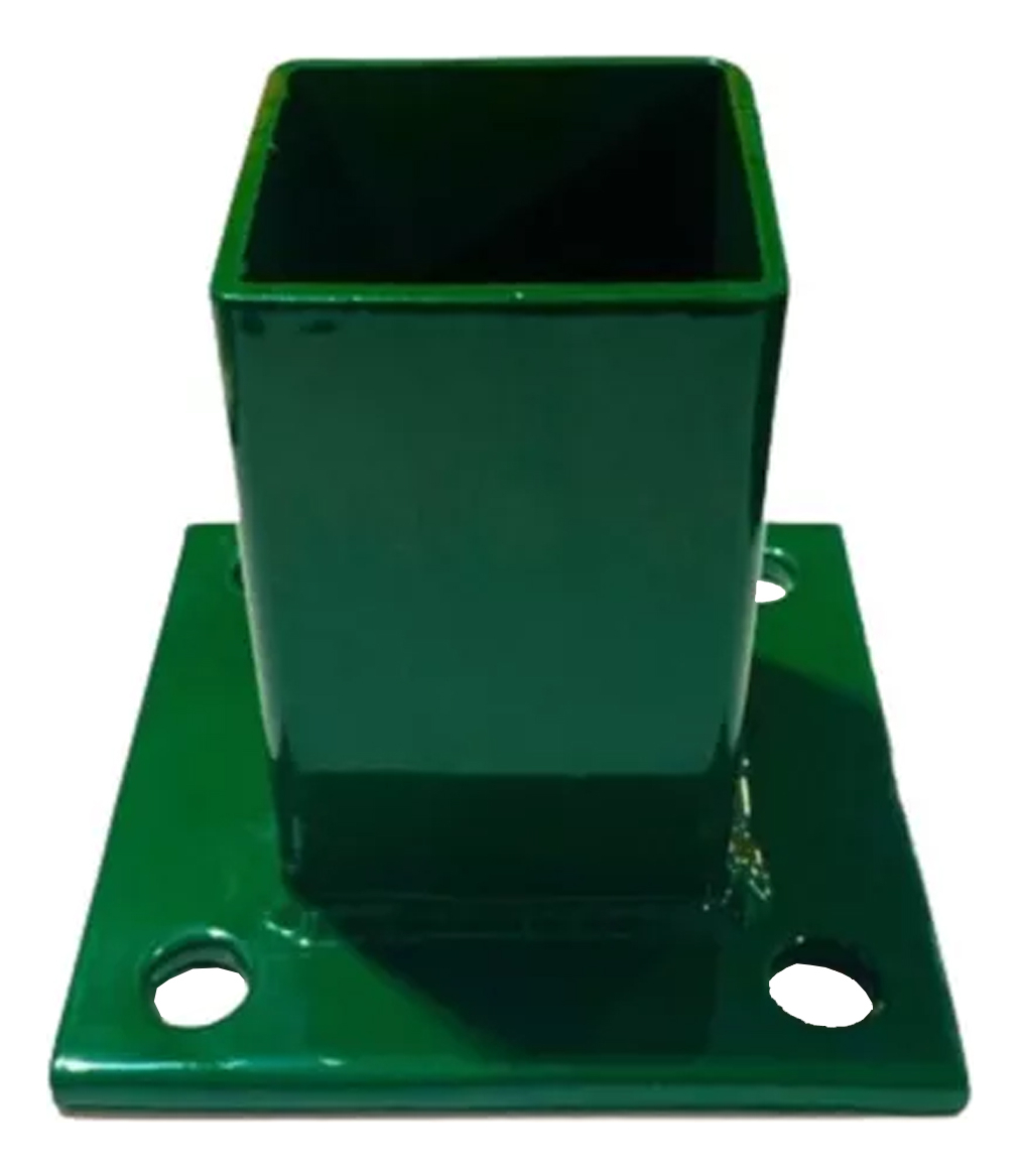 La base para poste de reja DeAcero 2.25 x 2.25 pulgadas permite fijar postes metálicos sobre superficies firmes. Está diseñada para instalaciones rápidas y seguras en sistemas de cercado.