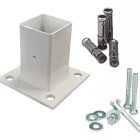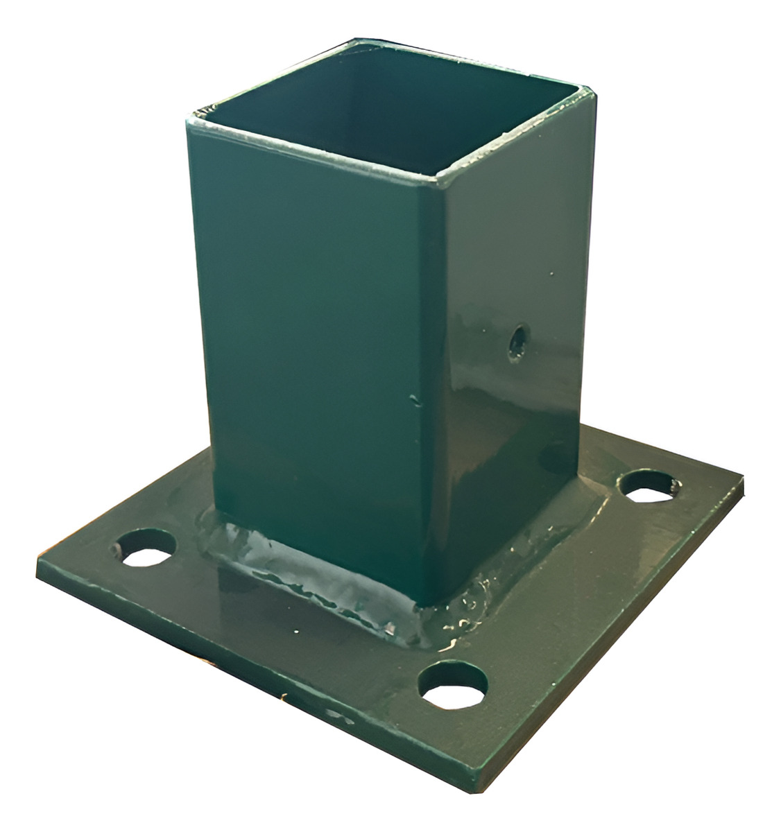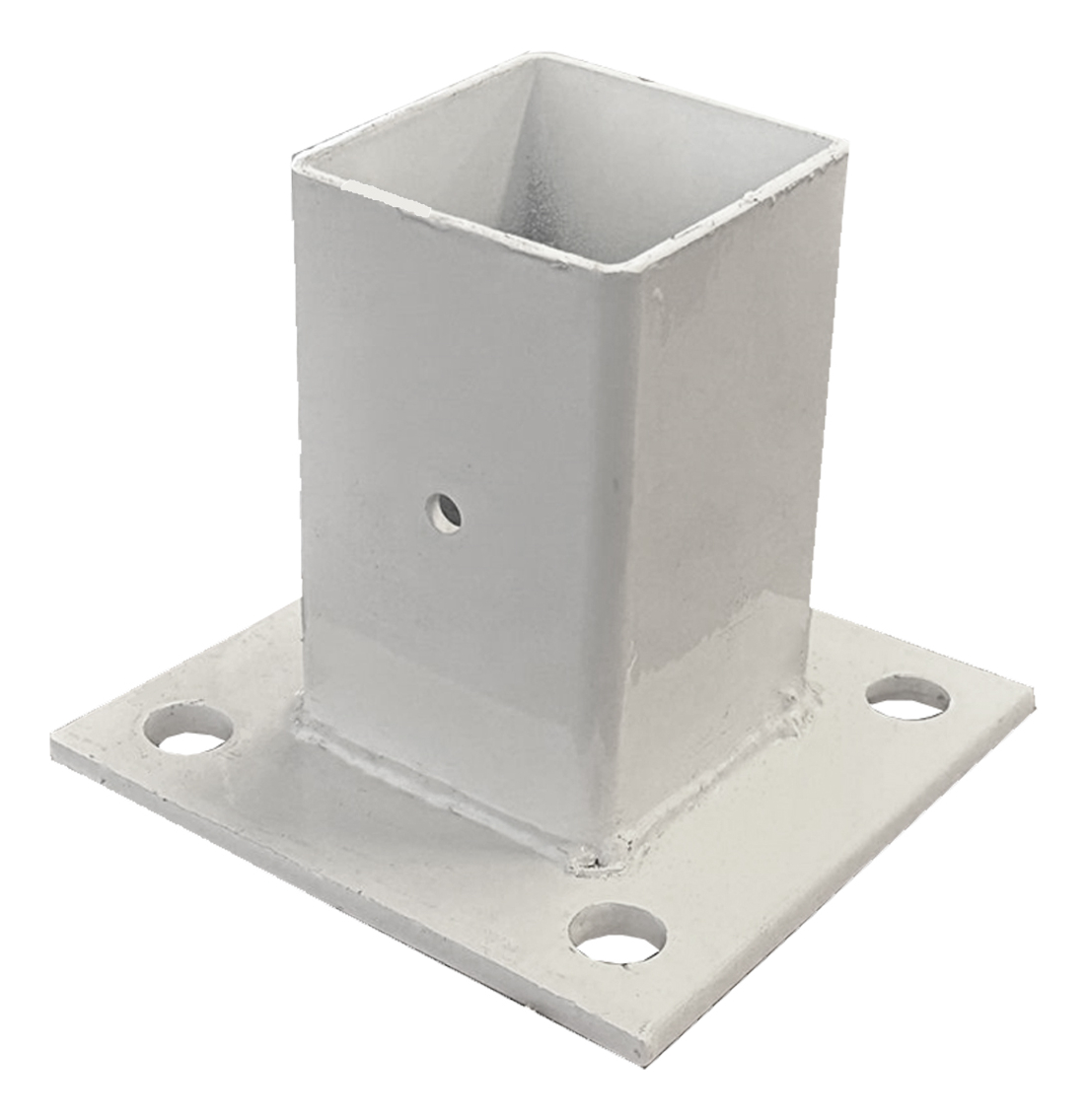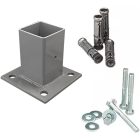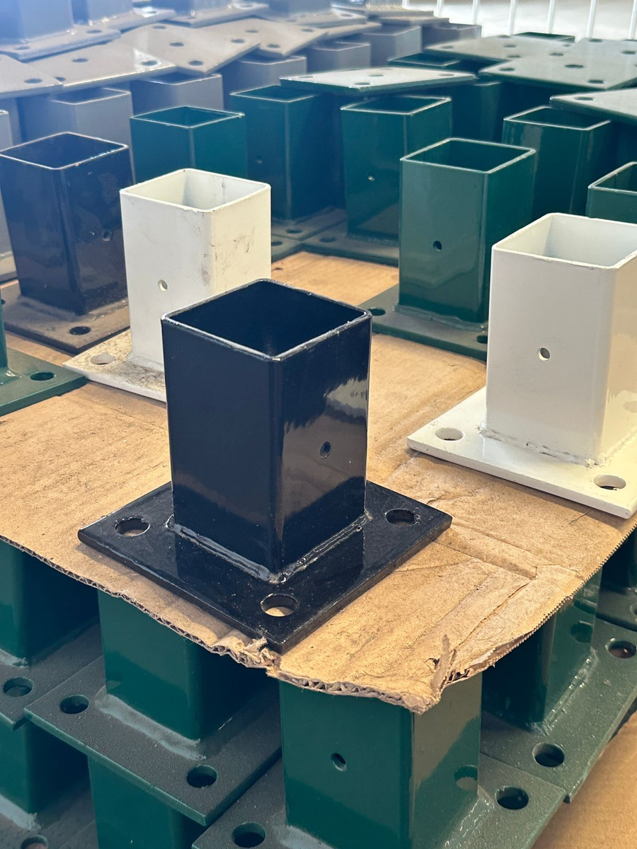 Producto nuevo en empaque individual. Incluye 1 base para poste de reja DeAcero con tornillo de fijación de 3/8 pulgadas.