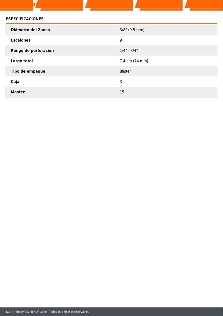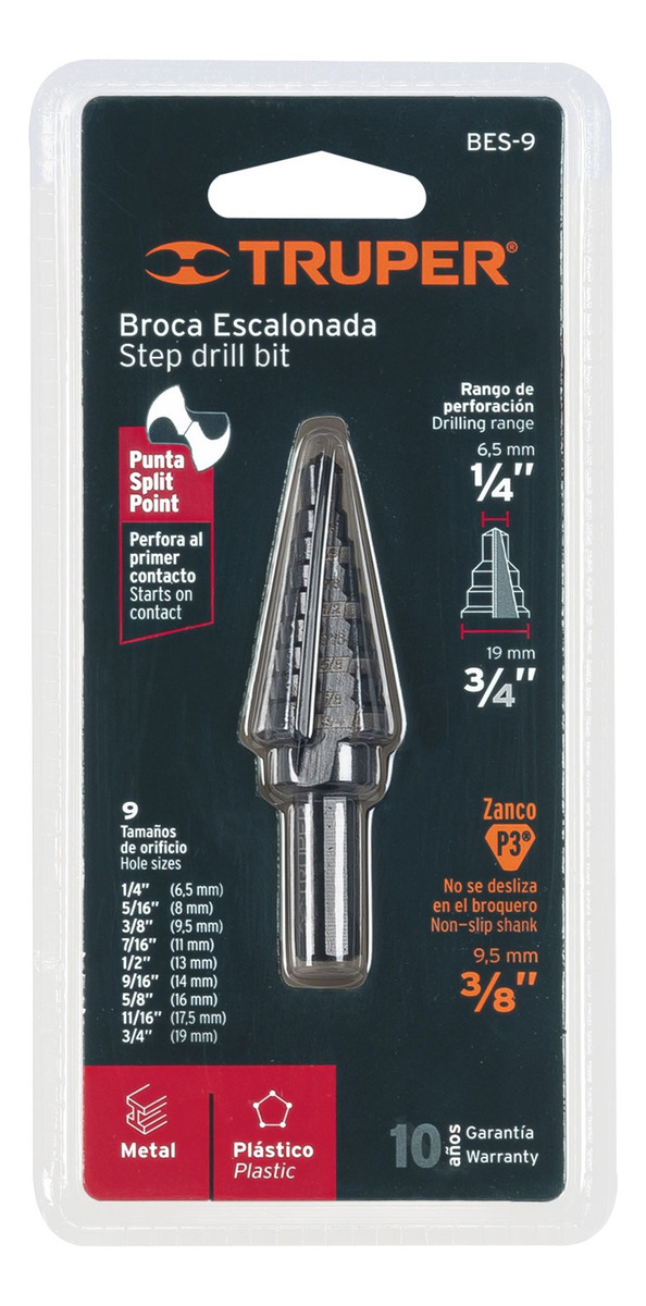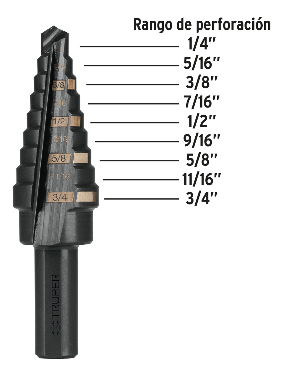 Broca Escalonada 1/4″ a 3/4″ 9 Pasos BES-9 Truper