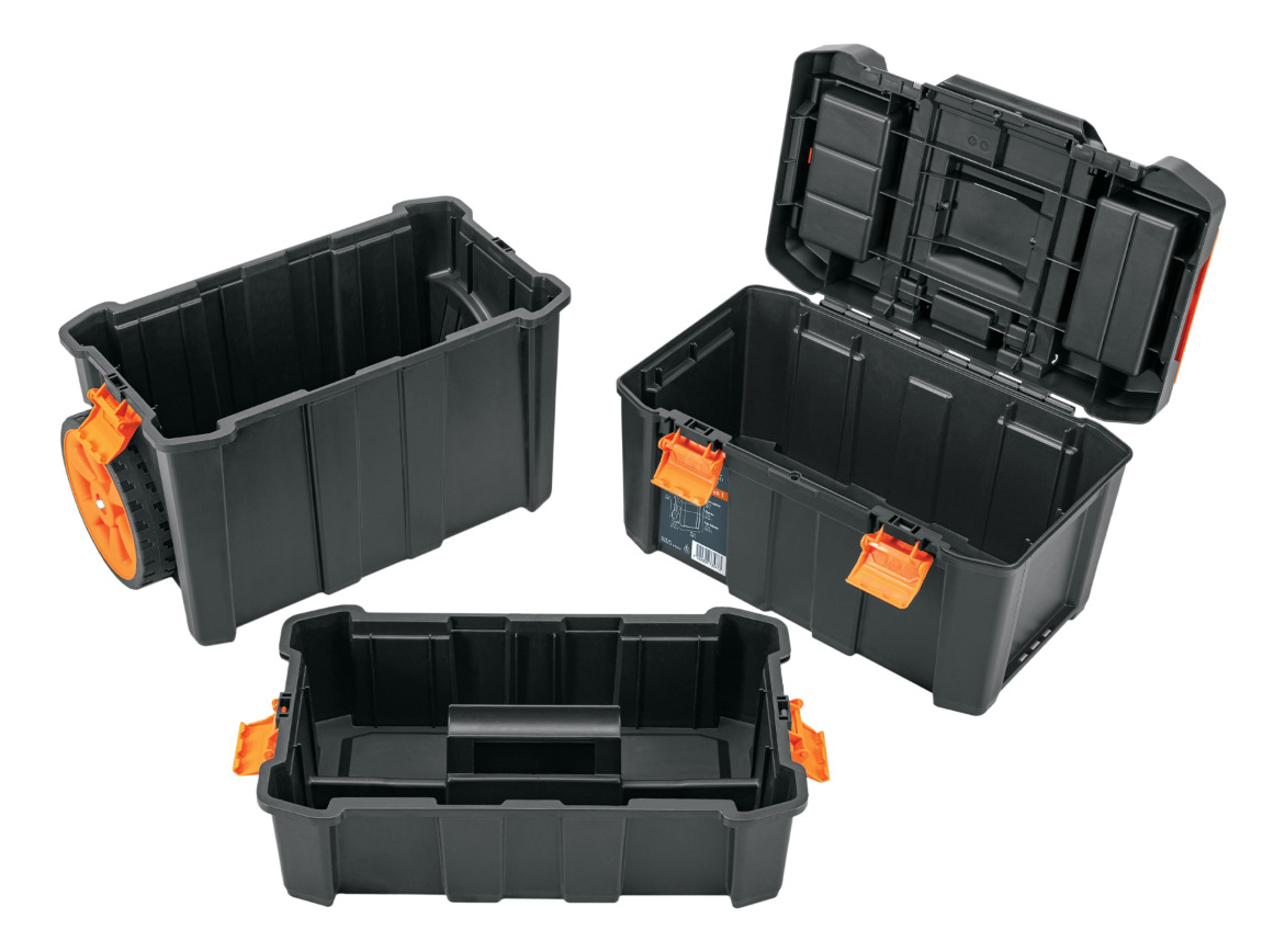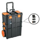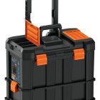 Este sistema se divide en tres secciones independientes: una caja superior para herramientas de uso frecuente, una sección intermedia para accesorios y una base de gran capacidad con ruedas. Gracias a sus broches de conexión rápida, puedes decidir si llevar el sistema completo a la obra o solo el módulo que necesites, optimizando el peso y el espacio.