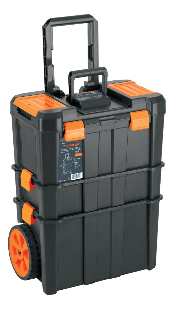 Fabricada en polipropileno de alta resistencia, esta caja está construida para soportar impactos y el rigor del trabajo en campo. Su diseño incluye una asa plegable robusta y ruedas de 7 1/2″ (19 cm) de uso rudo, que permiten desplazar los 53 litros de capacidad sobre terrenos irregulares con total estabilidad.