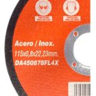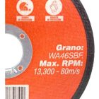 Está fabricado con granos de óxido de aluminio de alta pureza aglutinados con resinas fenólicas de última generación para una durabilidad máxima. Posee dimensiones de 4-1/2″ de diámetro, un espesor de corte de 3/64″ (1 mm aprox.) y un centro de 7/8″ compatible con la mayoría de las esmeriladoras angulares. Su diseño técnico permite una velocidad máxima de 13,300 RPM (80 m/s), manteniendo una baja vibración que reduce drásticamente la fatiga del operador. Es un disco libre de hierro, azufre y cloro, lo que lo hace totalmente apto para trabajos limpios sobre acero inoxidable sin riesgo de contaminación. La estructura interna está balanceada con precisión para evitar saltos durante el inicio del corte.
