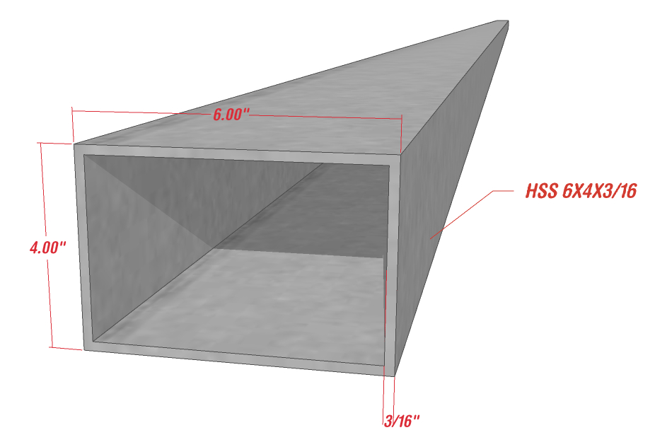 • HSS 6” x 4” x 3/16” – 17.81 kg/ml