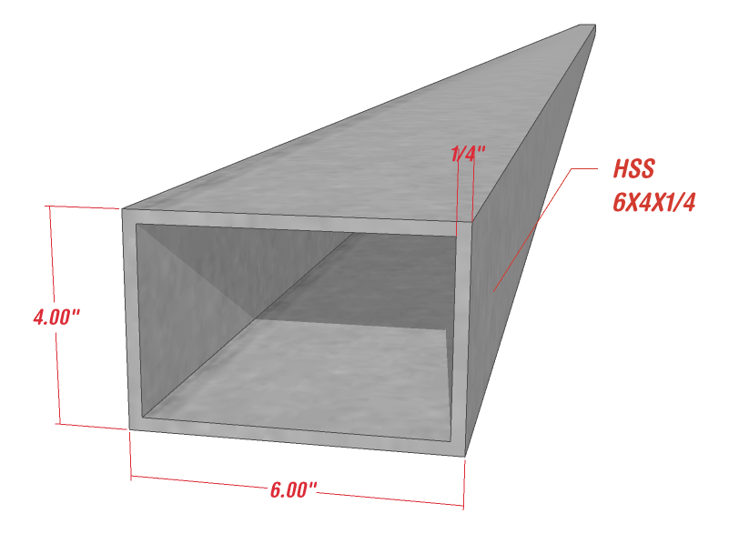 • HSS 6” x 4” x 1/4” – 23.27 kg/ml
