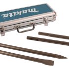 Makita desarrolló este kit pensando en la eficiencia en obra. Contar con cinceles de punta y planos en diferentes longitudes permite adaptarse a distintas tareas sin improvisar ni forzar la herramienta, mejorando el rendimiento del martillo y reduciendo el desgaste prematuro.