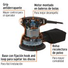Está fabricada con componentes de alta resistencia y un motor montado sobre baleros de bolas. Esta característica asegura una vida útil más larga y un desempeño mucho más fluido. Tiene una potencia de 260 W y alcanza una velocidad de 13,000 órbitas por minuto. Utiliza un sistema de fijación “hook and loop” (velcro) para cambiar las lijas rápidamente. Su base cuenta con 8 perforaciones que optimizan la succión del polvo hacia la bolsa recolectora. Pesa solo 1.4 kg y funciona con una tensión estándar de 127 V. Además, cumple con la norma oficial NOM-003-SCFI para mayor confianza del usuario.