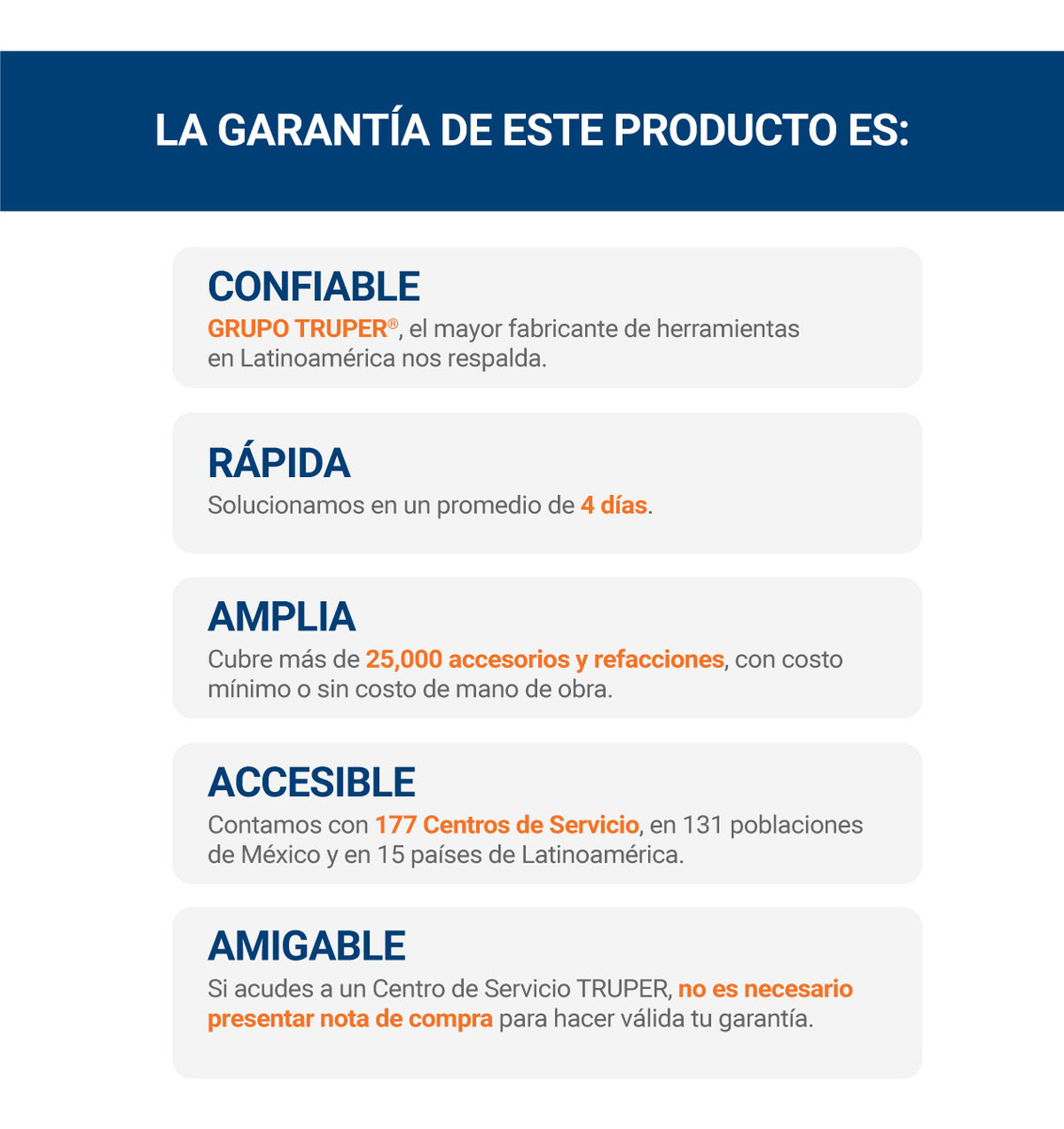El producto se entrega en su caja original de Truper con accesorios listos para trabajar. Cuenta con un mango ergonómico que incluye un agarre antiderrapante para mayor seguridad. Además, posee un interruptor hermético que impide la entrada de polvo al mecanismo interno. Incluye una bolsa recolectora que ayuda a mantener el área de trabajo mucho más limpia. Su tamaño compacto permite operarla con una sola mano de forma muy cómoda. Se percibe como una herramienta balanceada, diseñada para ofrecer un control total durante largas jornadas de uso profesional.