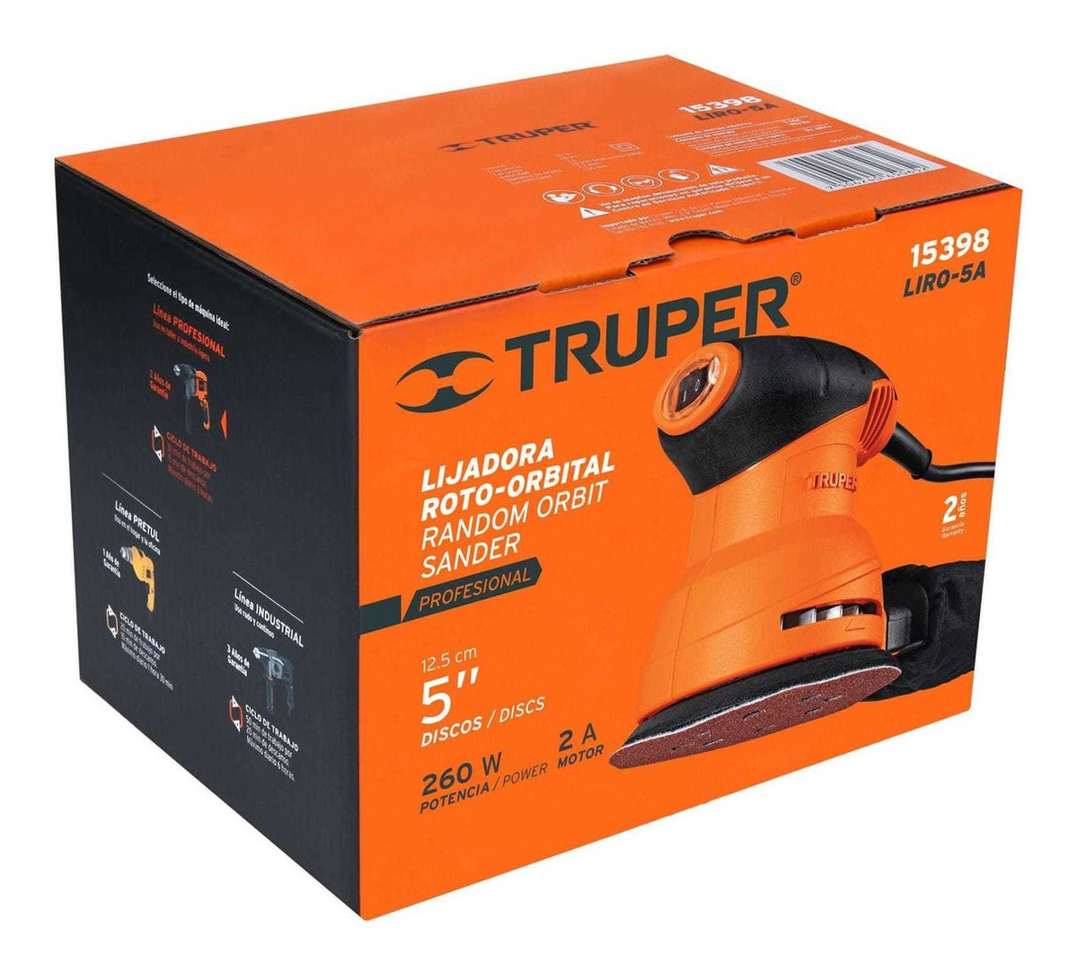 Lijadora Roto Orbital 5” Profesional 260w Truper Liro-5a