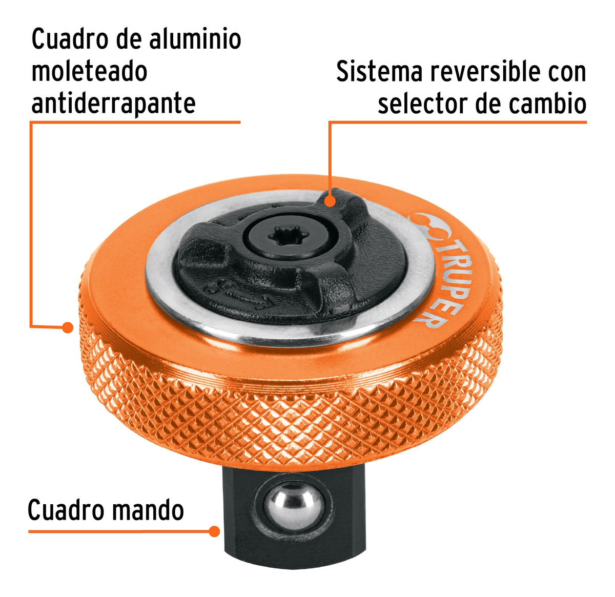 Su cuerpo de aluminio ofrece una excelente combinación entre ligereza y resistencia, mientras que el moleteado antideslizante en color naranja proporciona un agarre firme y seguro, incluso en condiciones de trabajo exigentes. El cuadro fabricado en acero al cromo garantiza durabilidad y resistencia al desgaste, asegurando un desempeño confiable en trabajos constantes.