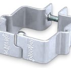 Las abrazaderas están fabricadas en acero con recubrimiento galvanizado, diseñadas para distribuir la carga de sujeción sin deformar la reja.