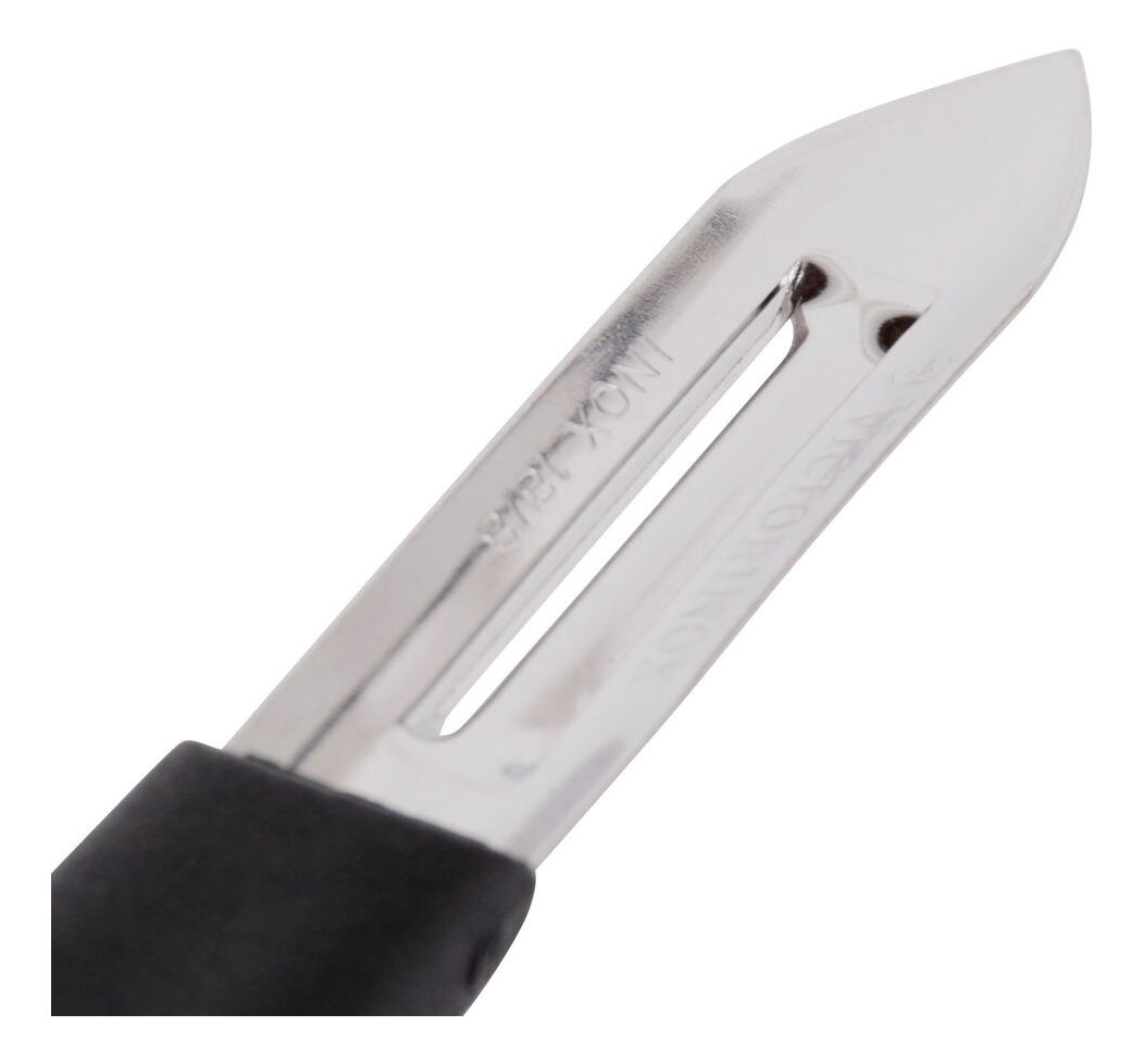 Cuenta con una hoja de acero inoxidable de doble filo ultra afilada que permite pelar en ambos sentidos, lo que lo hace completamente ambidiestro y agiliza el trabajo en cocina. Su diseño permite retirar la cáscara de papas, zanahorias, pepinos, manzanas y otras frutas y verduras con cortes finos y uniformes, reduciendo el desperdicio de alimento.