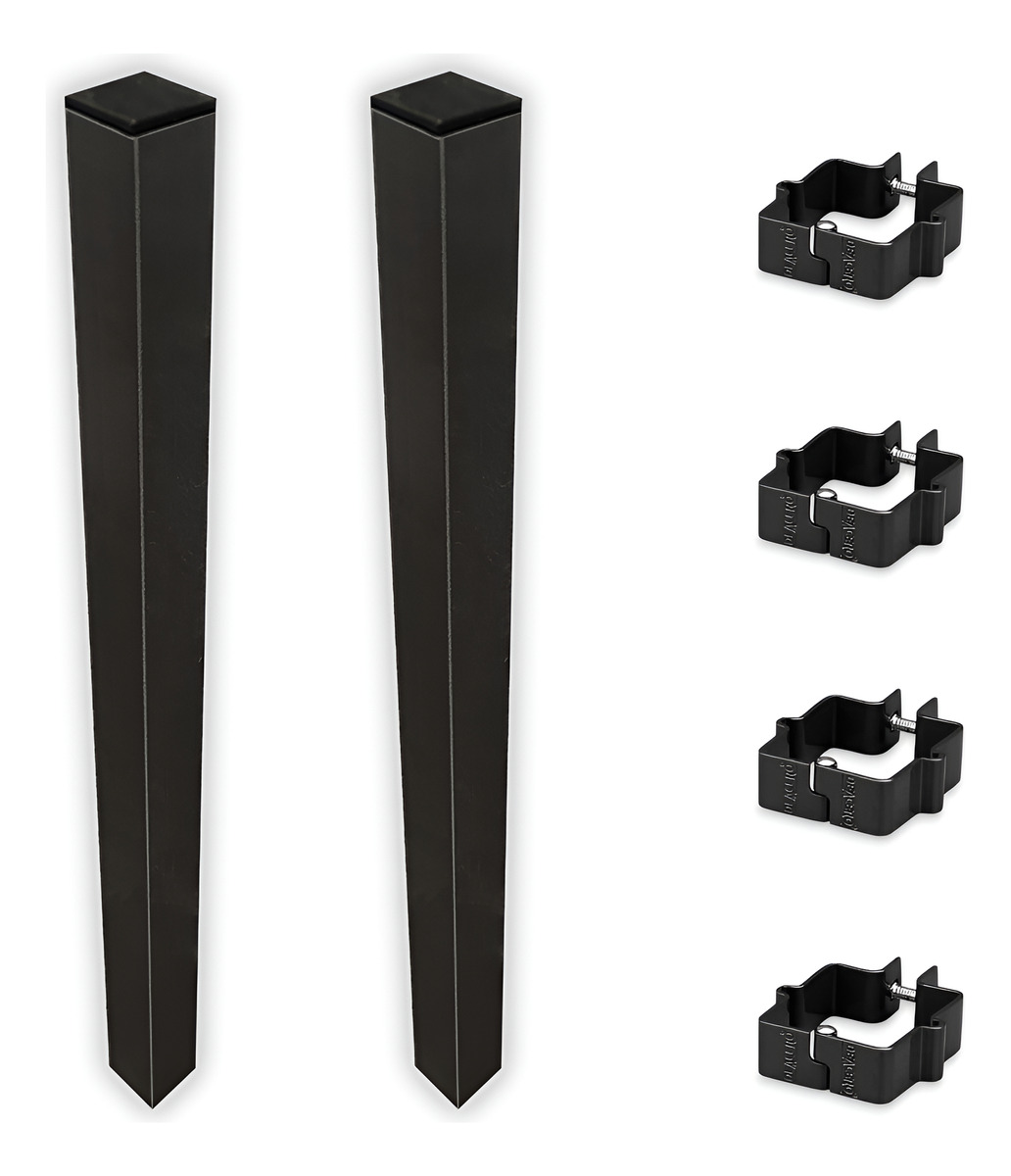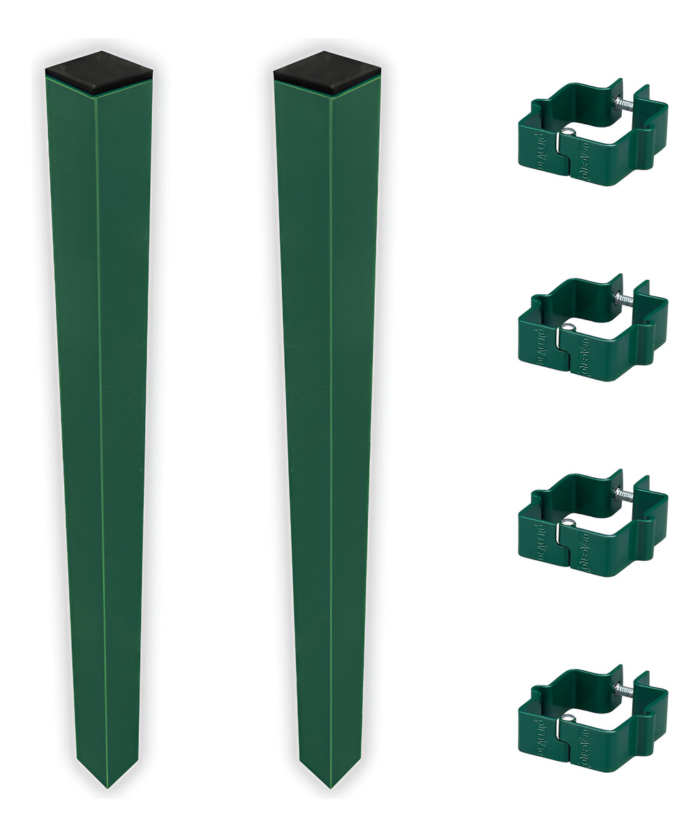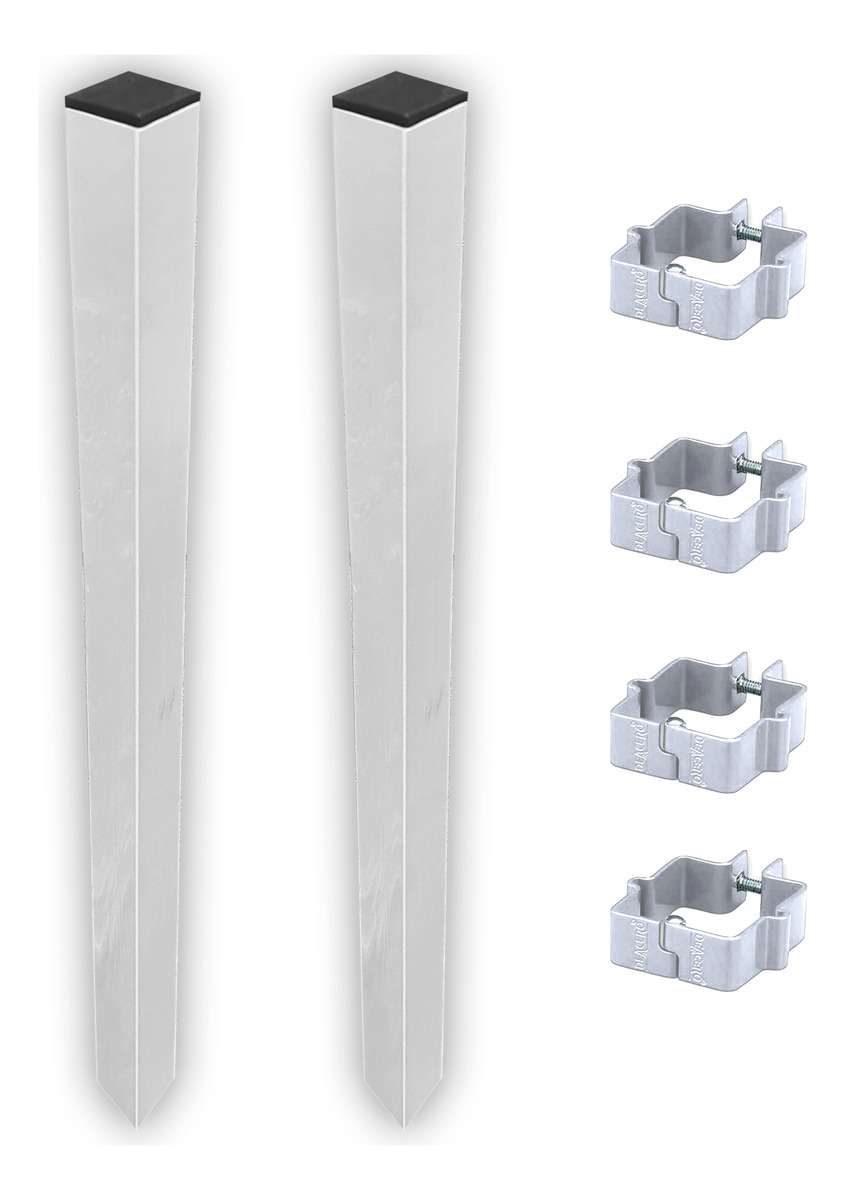 Paquete de 2 postes de acero galvanizado de 1.5 m y 4 abrazaderas incluidas. Resistentes, duraderos y fáciles de instalar en rejas clásicas.