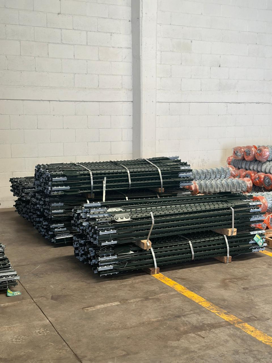 Este producto se entrega en un paquete de 10 unidades debidamente flejadas para facilitar su carga, transporte y distribución en el área de trabajo. Cada poste cuenta con un acabado protector que garantiza resistencia a la oxidación incluso en ambientes de alta humedad. Su diseño incluye una placa de anclaje soldada que asegura una fijación firme al enterrarse 30 cm en el suelo, evitando desplazamientos laterales. Además, presenta muescas a lo largo del cuerpo que permiten sujetar el alambre de púas o la malla de forma sencilla y precisa. Se percibe como un material de grado industrial, compacto y robusto, diseñado para ser instalado manualmente de forma eficiente en cualquier tipo de terreno rural.