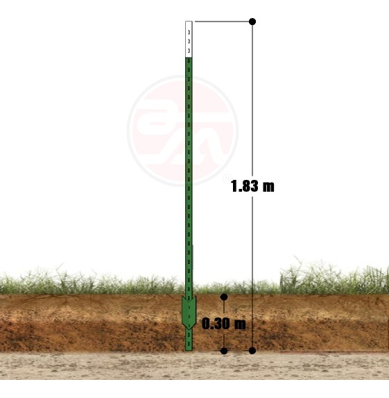 Está fabricado con acero de riel de ferrocarril reciclado, lo que le otorga una dureza extrema. Tiene una altura total de 1.83 metros (6 pies), una medida estándar para cercos ganaderos eficientes. Su diseño ligero facilita el transporte, pero su estructura es muy difícil de doblar bajo presión. Cuenta con un ancla que se entierra 30 centímetros para garantizar que el poste no se mueva. Además, es un producto ecológico que ayuda a evitar la tala de árboles en las zonas rurales. Es totalmente resistente al fuego y no requiere mantenimiento contra plagas o podredumbre.