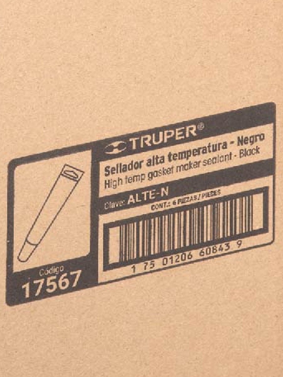 El sellador de silicón negro Truper modelo 17567 está formulado para aplicaciones que requieren alta resistencia térmica, flexibilidad permanente y sellado confiable en condiciones exigentes. Cada tubo contiene 85 gramos y el paquete incluye 4 piezas, ideal para uso continuo en mantenimiento automotriz, mecánico e industrial.
