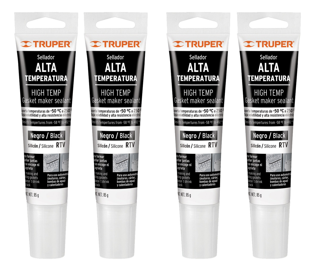 Sellador de Silicón Negro para Altas Temperaturas Truper 17567 – Juego de 4 Piezas (85 g c/u)