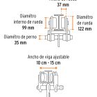 - Ajustable para vigas IPR/IPS de 100 mm a 150 mm.